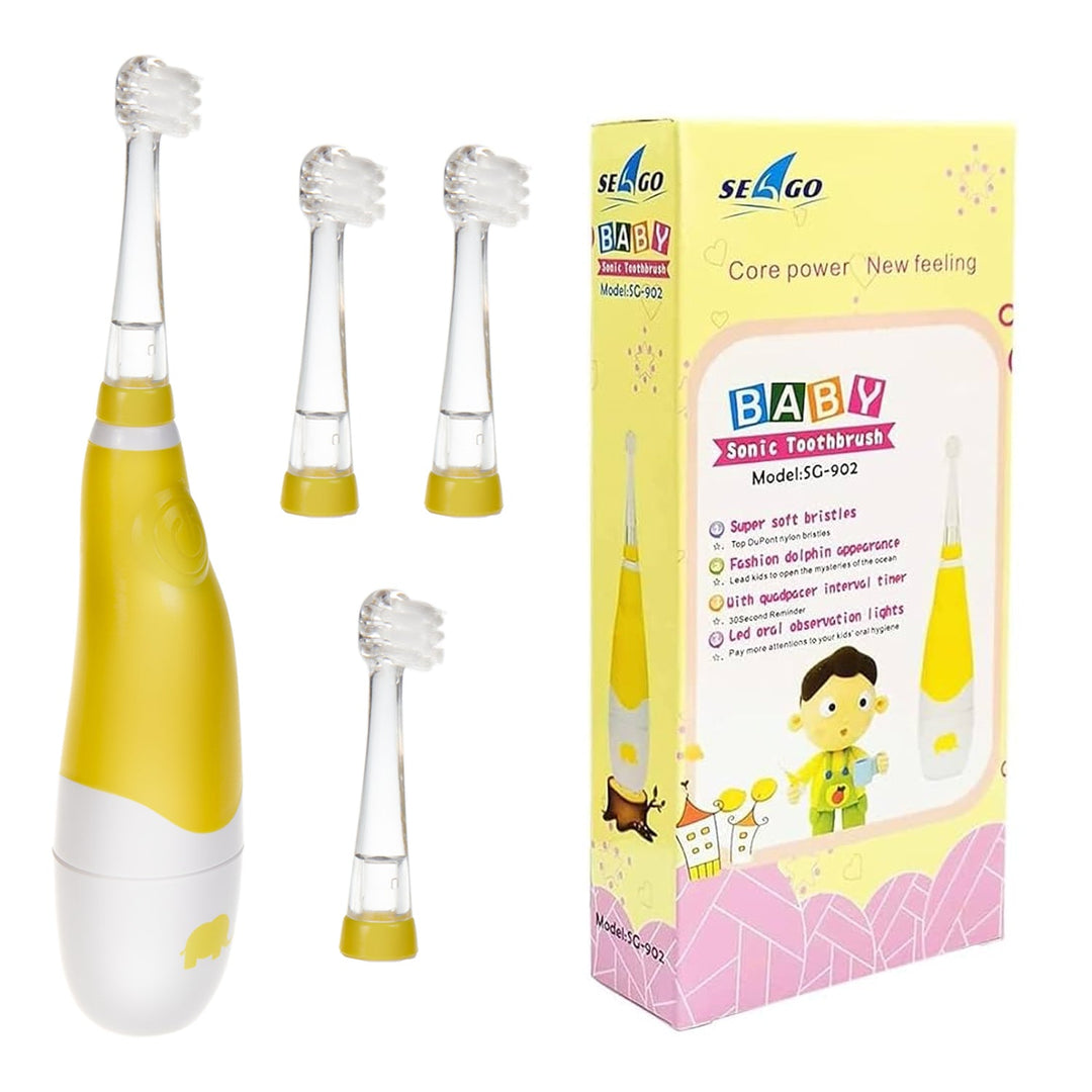 SEAGO children's sonic toothbrush, yellow, 1xAAA 1.5V (not included), 4 tips, SG-902 Yellow
