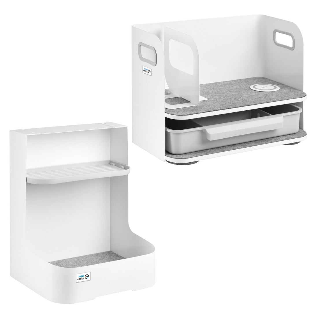 Desk organizer with drawer and wireless charger Ergo Office, white, max. 10kg, ER-441 + Under-desk organizer for office supplies up to 5kg ER-442