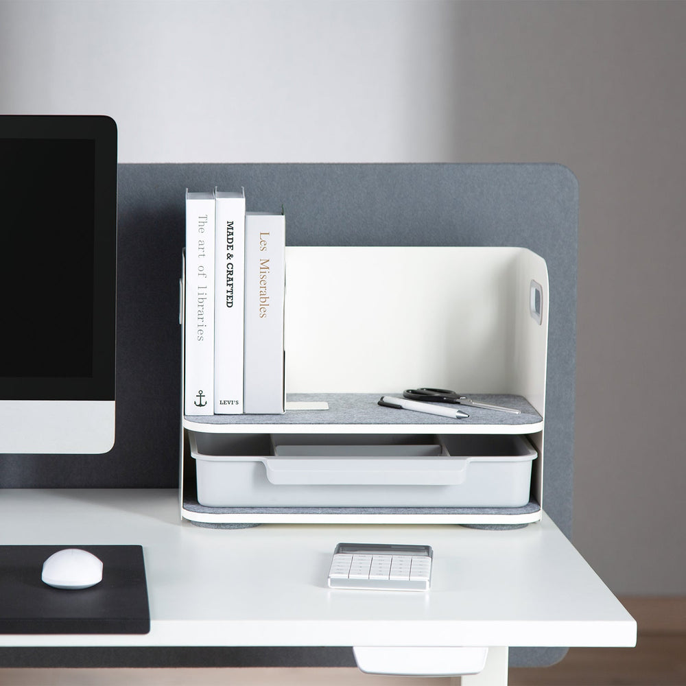 Ergo Office ER-440 Desk Organizer with Drawer and Bookend Office Utensils Organizer Office Tray up to 10kg White