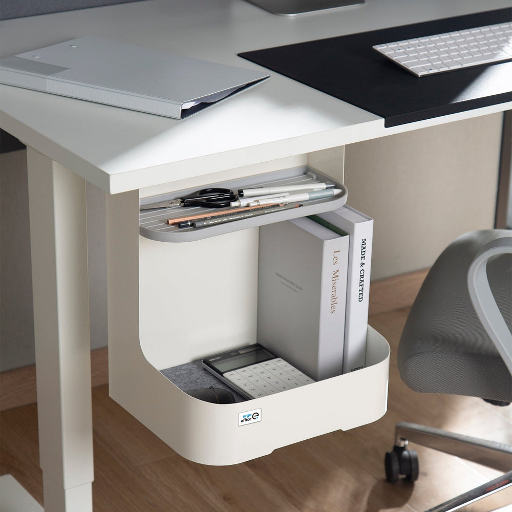 Ergo Office desk organizer with drawer, white, max. 10kg, ER-440 + Under-desk organizer for utensils ER-442