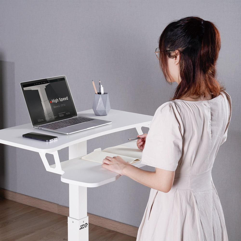 Ergo Office ER-444 W Height Adjustable Sit-Stand Desk With Castors Workstation With Double Platform Loadable Up To 8kg White