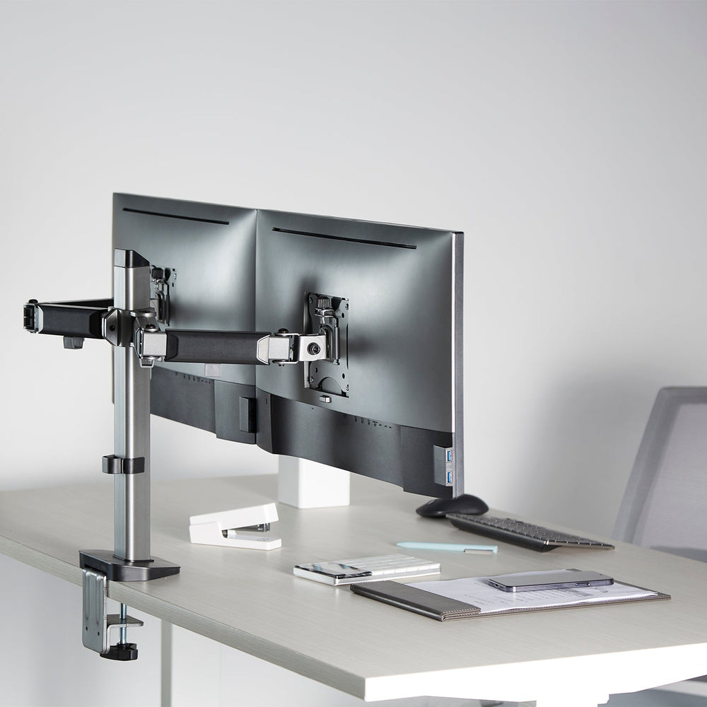 2-Fold Monitor Mount With Gas Spring Table Mount 17-35" Swivel Tilt Rotatable Height Adjustable Double Arm VESA 75x75 100x100 up to 2x15kg