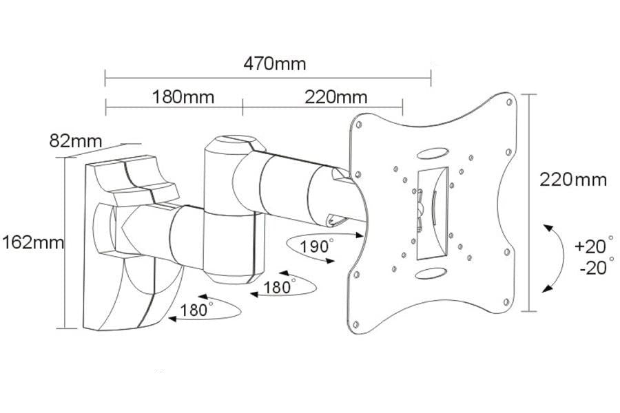 Wall bracket for the 1st monitor / LCD / LED TV, on ART L-12GW gas spring